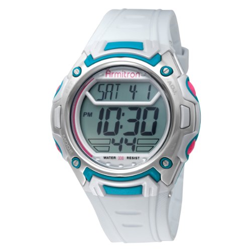 Armitron Men's 408152WTBL Chronograph White Strap with Blue Accents Round Dial Digital Sport Watch Overview